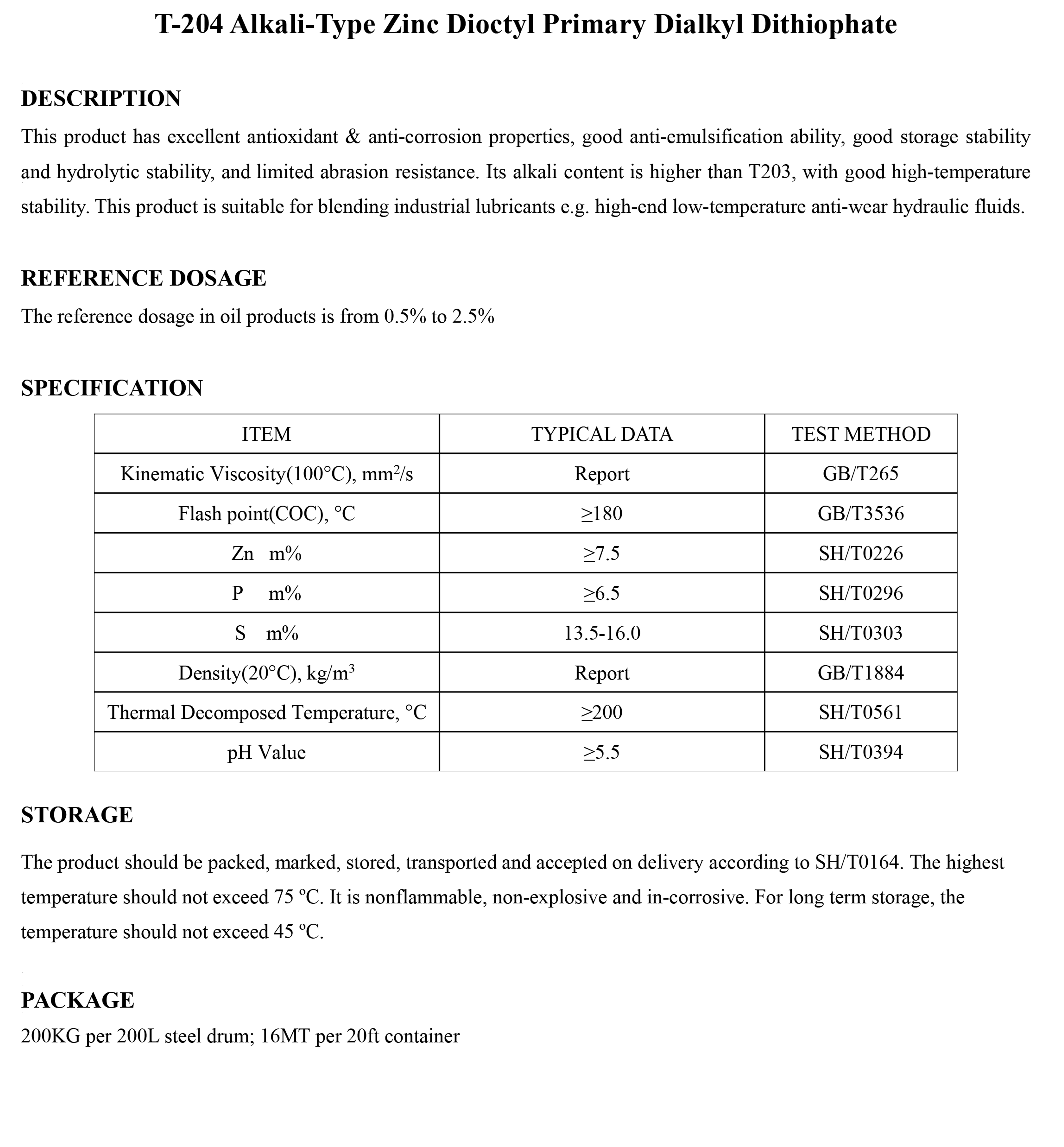 T-204 Alkali-Type Zinc Dioctyl Primary Dialkyl Dithiophate-ZDDP-錦州新興石油添加劑有限責(zé)任公司