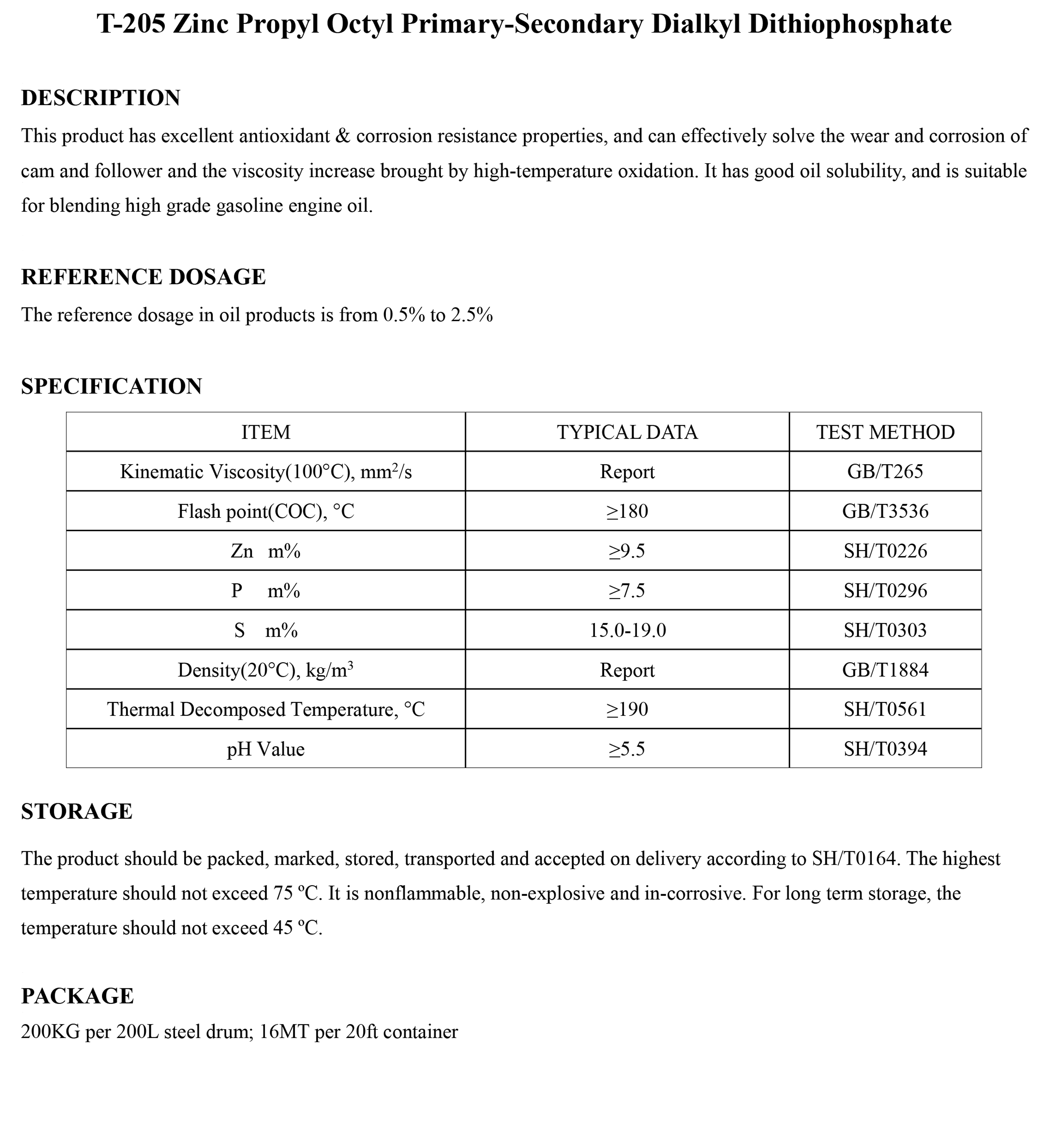 T-205 Zinc Propyl Octyl Primary-Secondary Dialkyl Dithiophosphate-ZDDP-錦州新興石油添加劑有限責(zé)任公司