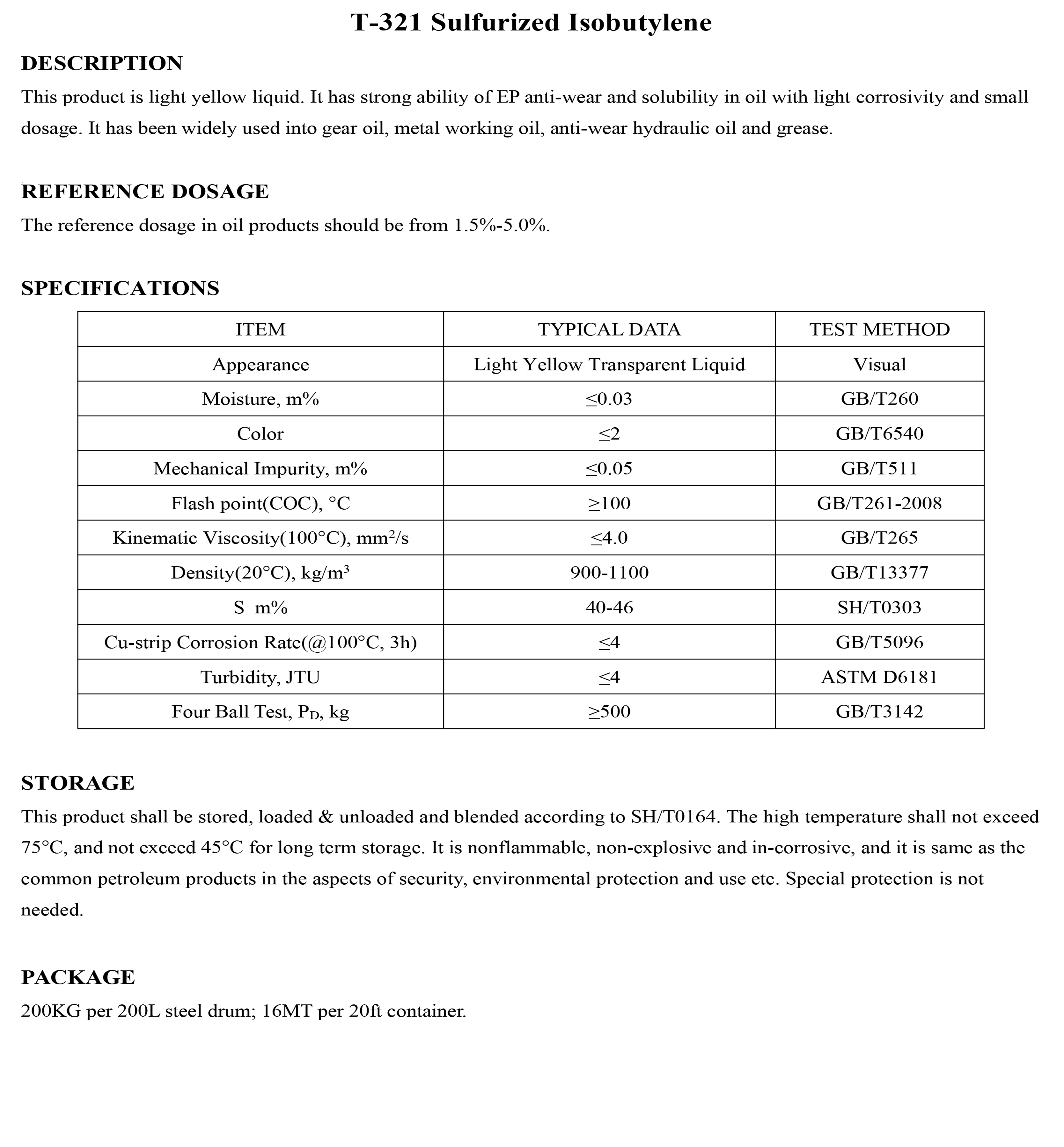 T-321 Sulfurized Isobutylene-EP Antiwear Additive-錦州新興石油添加劑有限責(zé)任公司