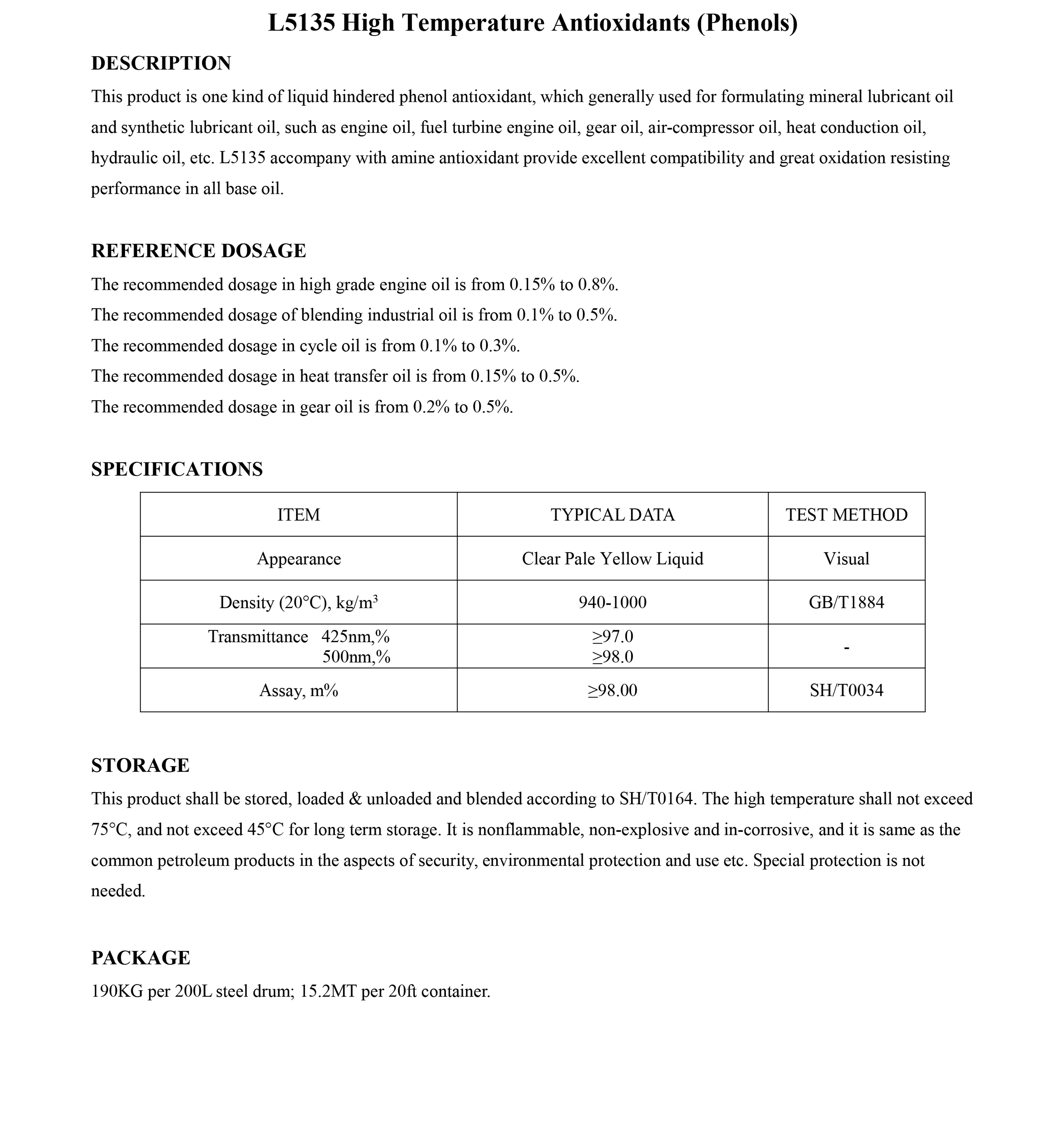 L5135 High Temperature Antioxidants (Phenols)-Antioxidant and Antiglue Additive-錦州新興石油添加劑有限責(zé)任公司