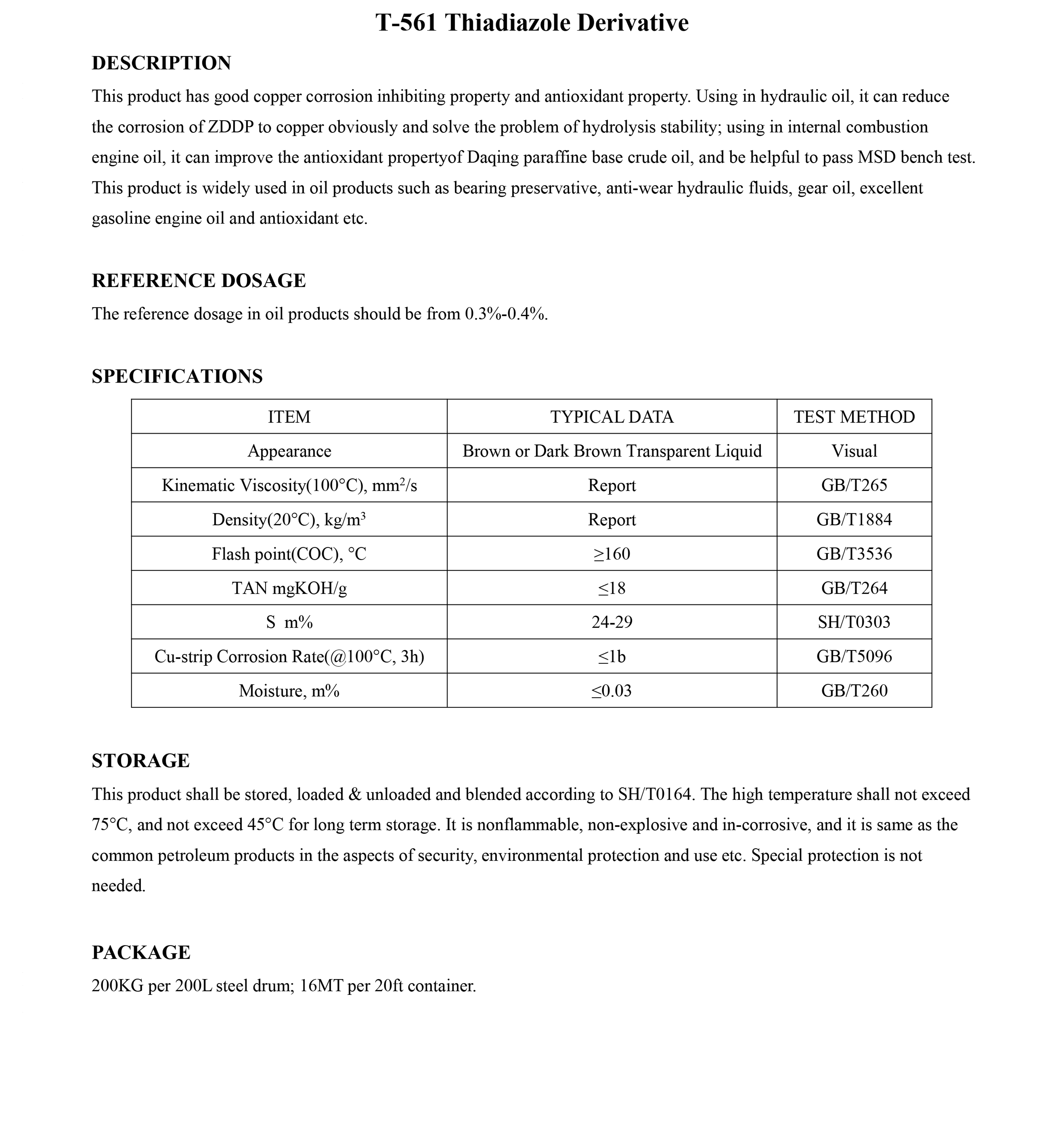 T-561 Thiadiazole Derivative-Antioxidant and Antiglue Additive-錦州新興石油添加劑有限責(zé)任公司