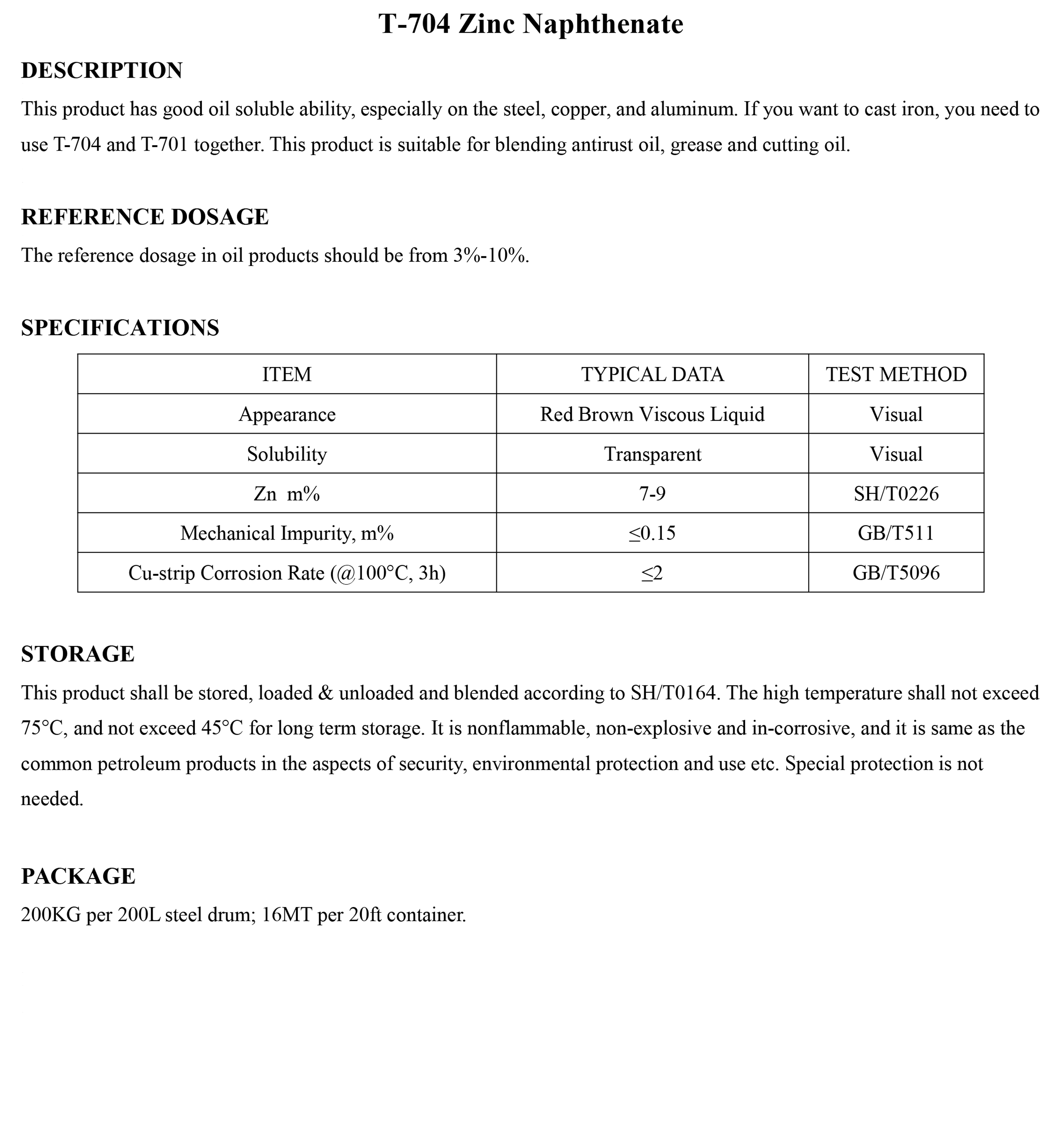 T-704 Zinc Naphthenate-Antirust Additive-錦州新興石油添加劑有限責(zé)任公司