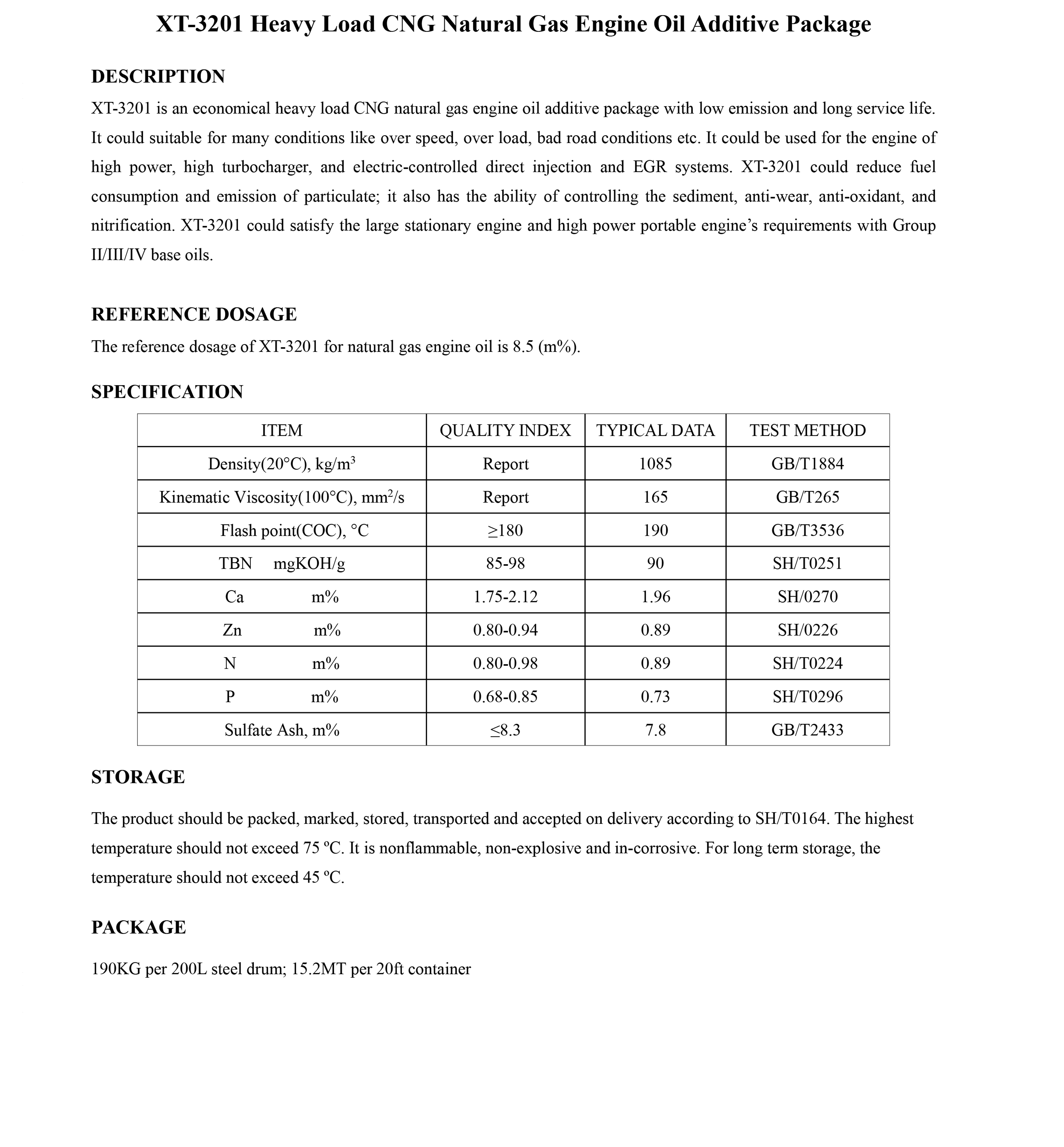 XT-3201 Heavy Load CNG Natural Gas Engine Oil Additive Package-Engine Oil Additive Package-錦州新興石油添加劑有限責(zé)任公司